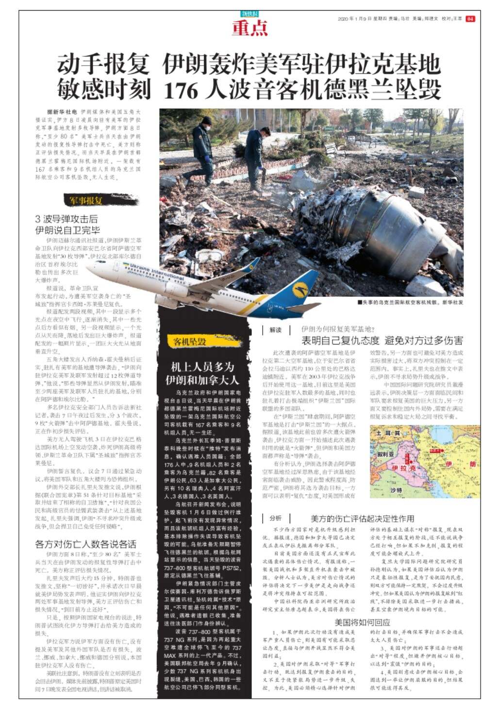 动手报复 伊朗轰炸美军驻伊拉克基地 敏感时刻 176人波音客机德黑兰坠毁