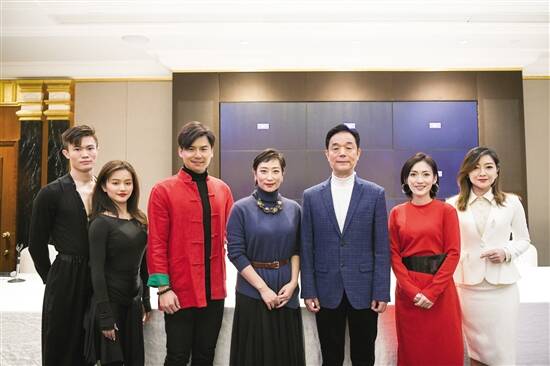■连续主持新年舞会20年的歌唱家熊家源(右三)与一众演出嘉宾合影。