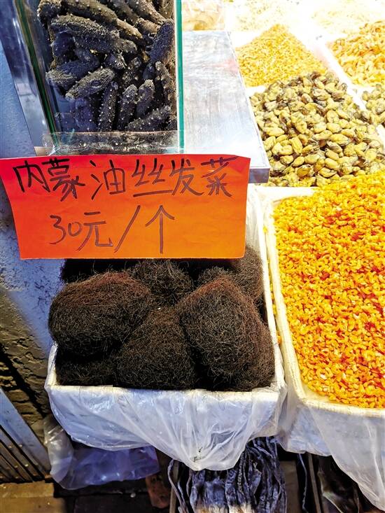 一家特产店老板告诉记者,宁夏的“野生发菜”最好,每斤要650元,现在店里只有这么一点货。