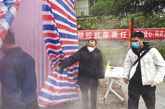 新快报讯 记者许力夫 夏世焱/摄影报道 2月10日开始,不少企业都开始复工了。广州海珠区的TIT创意园物业自制了一座4米长的消毒棚,来上班的员工必须通过消毒棚才能进入园区。记者在现场看到,在园区上班的员工测量体温和登记个人资料后,依次通过消毒棚。棚内设有喷雾化消毒液的加湿器,加湿器内是经过稀释调制的消毒液。9点左右只有零散的人来到园区上班,消毒棚前并不是十分忙碌。园区物业的工作人员刘先生介绍,以往园区的上班高峰期是8点半到9点半,但现在园区内的企业都采取了错峰上班的时间,员工的上班时间比以往分散了。有使用过消毒棚的上班族表示,这个消毒棚让他们安心了不少。