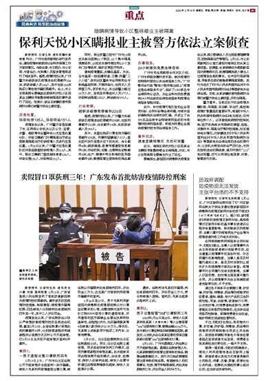 新快报讯 记者何生廷 通讯员全小晴 刘娅 荔明报道 2月13日,广东省高级人民法院发布了首批妨害新冠肺炎疫情防控犯罪案例。案件涉及抗拒疫情防控措施、制假售假、借疫情诈骗等犯罪,四名被告人分别被判处有期徒刑四年至一年,其中三人并处罚金。疫情发生以来,广东法院依法从快从严审理妨害疫情防控的各类违法犯罪,截至2月12日,全省法院累计受理此类刑事案件20件,分别按简易程序和速裁程序以视频方式及时公开开庭审理,仅2月13日当天即开庭审理并宣判8件案件。