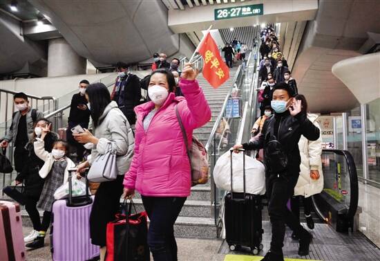■2月20日,从成都东出发的四川免费返粤专列D4755次列车抵达广州南站。新快报记者 夏世焱/摄
