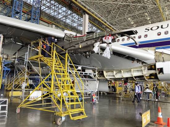 ■广州飞机维修工程有限公司内,维修人员忙着检修飞机。通讯员供图