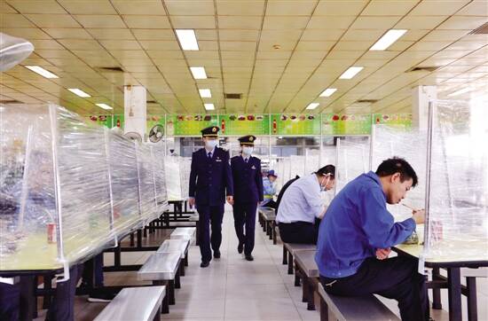 员工进厂前都要进行测量体温,分发口罩、检查证件、填写信息等防疫检查步骤,且每道程序都有专人指导监督。就餐时,不扎堆聚集,不面对面等规定……新快报记者走访的工厂,均看到为防疫所做的这些工作。