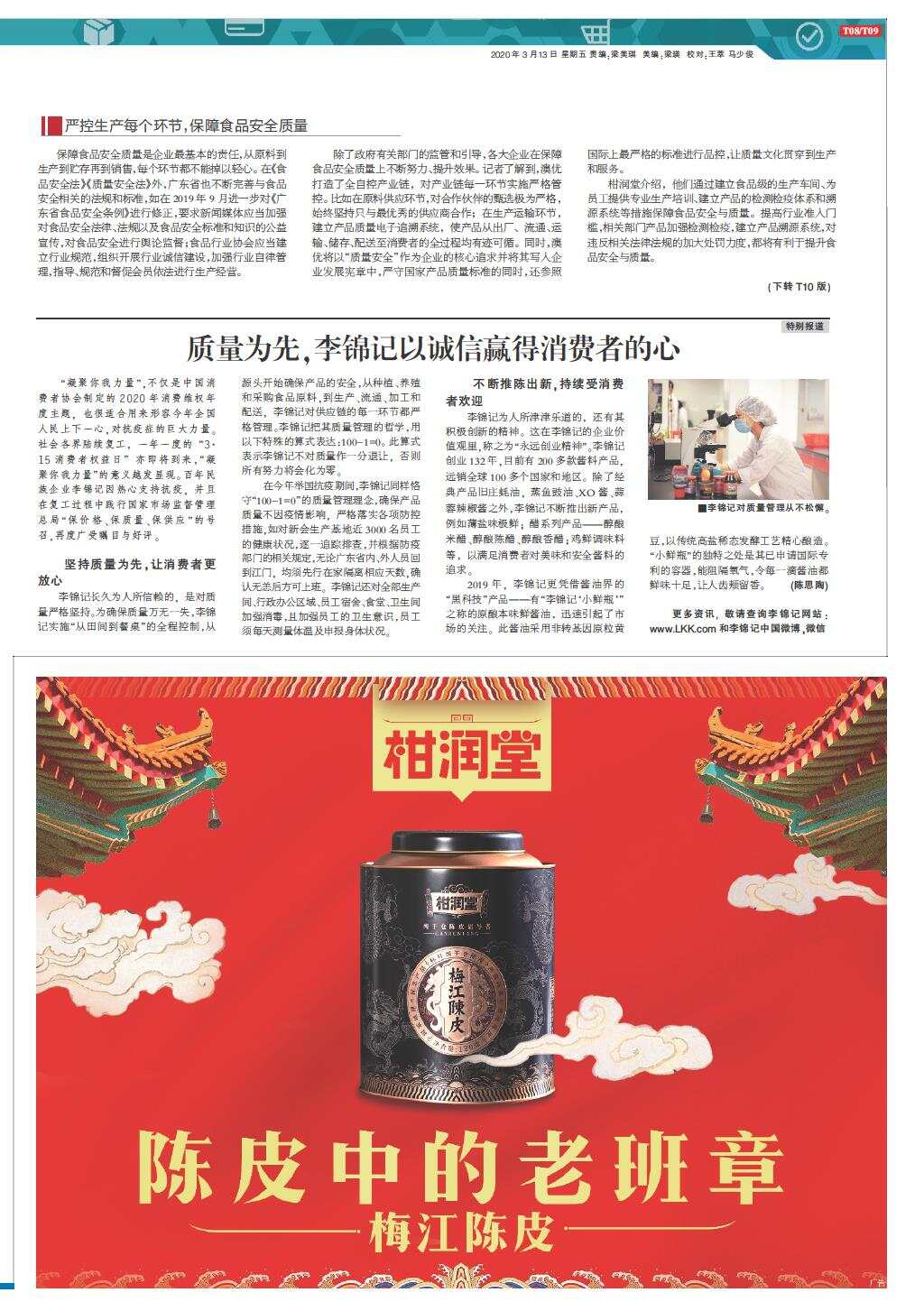 质量为先,李锦记以诚信赢得消费者的心