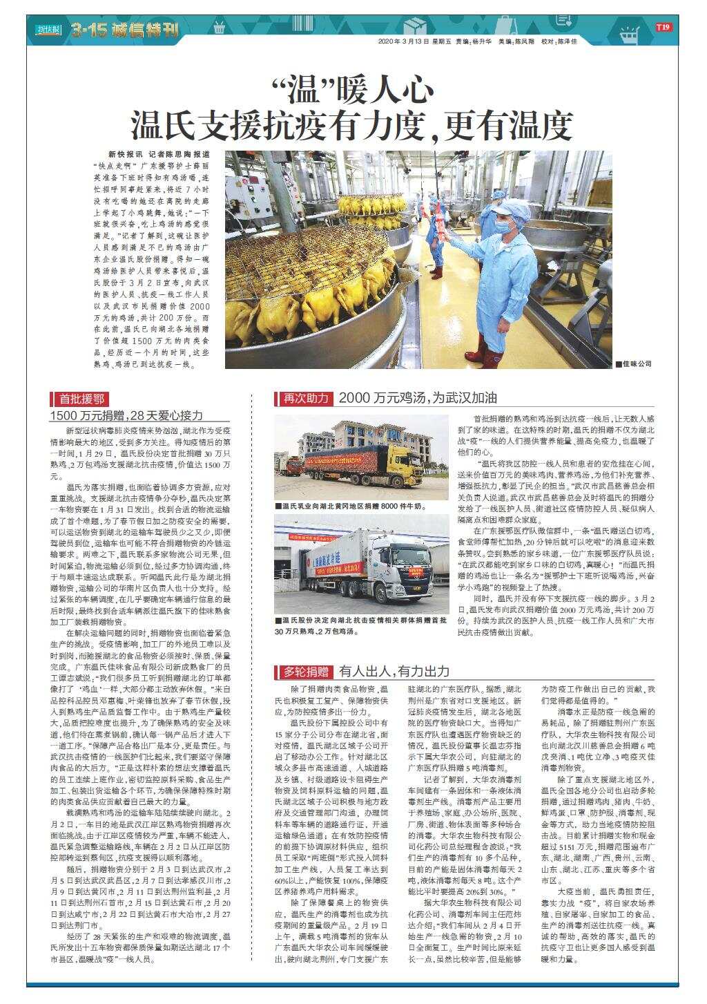 “温”暖人心 温氏支援抗疫有力度,更有温度