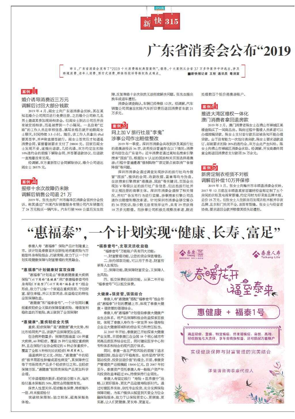 广东省消委会公布“2019 十大消费维权典型案例”
