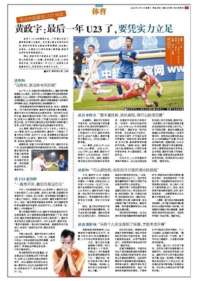 今年,黄政宇23岁,也就是说,这将是他享受U23政策红利的最后一个赛季。在职业足坛,23岁是一个分水岭,一旦过了23岁,就不会再被视作年轻球员。卡在U23的关口上,黄政宇也有了紧迫感,“我必须在平时的训练中努力提高自己,争取能够和老大哥们竞争主力位置,用实力立足球队。”