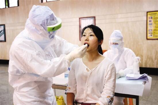 ▲昨日,执信中学进行复课演练,教职工在接受核酸检测。