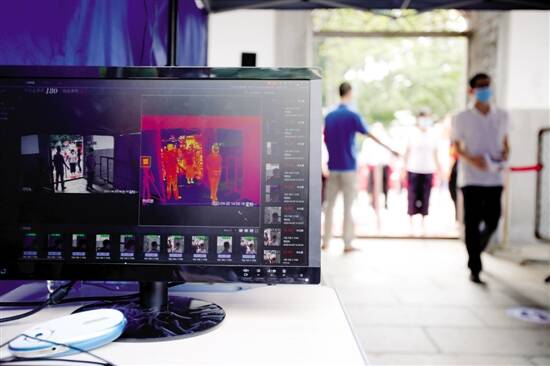 ■昨日,执信中学进行复课演练,师生进入校门前需进行红外线测温。
