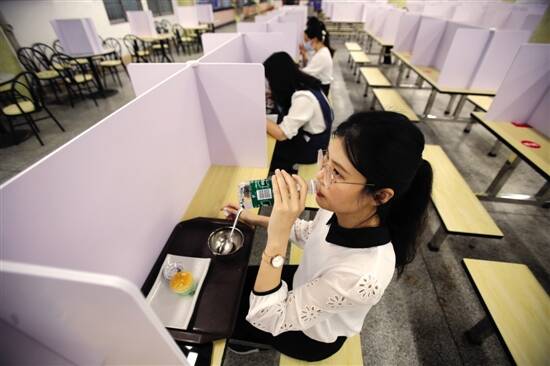 ■执信中学教师在改造后的食堂内就餐。