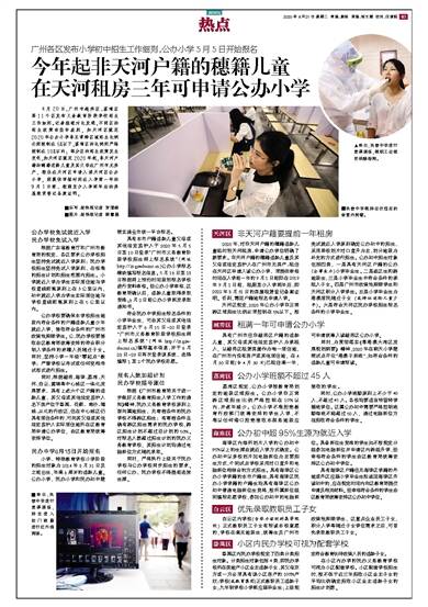 4月20日,广州市越秀区、荔湾区等11个区发布义务教育阶段学校招生工作细则。记者梳理对比发现,不同区的招生政策有些许差别,如天河区规定2020年公办小学非正常跨区域招生比例必须控制在5%以下,荔湾区的比例则严格控制在10%以内;部分区的招生政策发生变化,如天河区规定2020年起,非天河户籍的穗籍适龄儿童及其父母在广州市无房产、租住在天河区申请入读天河区公办小学,须提供审核时间在入学前一年的9月1日前、租期至少入学两年后的房屋租赁登记备案证明。■采写:新快报记者 罗清峣