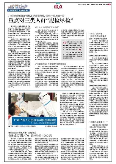 “现在的疫情防控确实需要‘小题大做’的态度,我们的策略调整也有足够的能力支撑,广州对病毒核酸的检测能力达到日均7万份,位居全国前列。”