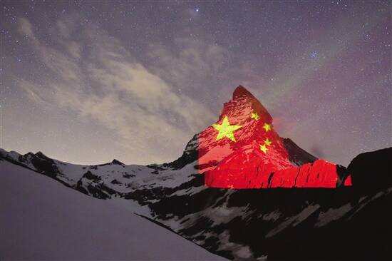 近期,采尔马特市旅游局通过在马特洪峰投射各国国旗等方式,传递希望和勇气,呼吁全世界共克时艰。新华社发