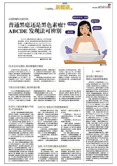2010年,电影《非诚勿扰2》播出后,人们开始知道黑色素瘤。近年来,黑色素瘤是发病率增长最快的恶性肿瘤之一,年增长率约为3%-5%。2020年4月15日-21日是第26个全国肿瘤防治宣传周,“癌症防治共同行动”的主题倡导人人参与、广泛开展防癌科普宣传,提高全社会癌症防治意识和能力。专家表示,黑色素瘤可发生在身体任何部位,容易漏诊、误诊或用药局限。正常人体表平均有色素痣15-20颗,可通过ABCDE原则观察是否可能为黑色素瘤。■新快报记者 梁瑜