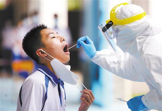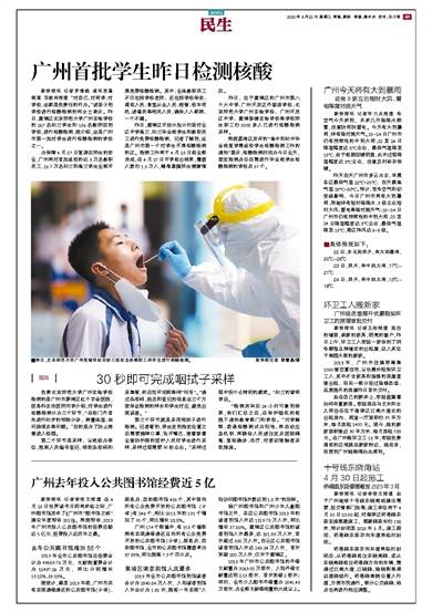 新快报讯 记者罗清峣 通讯员黄晓雪 范敏玲报道 “对自己,对同学,对学校,这都是负责任的行为。”送孩子到学校进行核酸检测的郑女士表示。昨日,黄埔区北京师范大学广州实验学校的267名初三学生和136名教师回到学校,进行核酸检测,据介绍,这是广州市第一批对学生进行核酸检测的学校之一。为保障4月27日复课后师生的安全,广州将对首批返校的近3万名教职员工、16.7万名初三和高三学生全部开展免费核酸检测。其中,全体教职员工不仅包括学校老师,还包括学校保安、清洁人员、食堂从业人员、宿管、校车司机、送餐员等相关人员,确保人人都测、一个不漏。