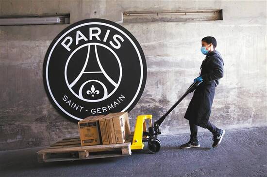 ■自4月9日起,法国巴黎圣日耳曼俱乐部的主场——巴黎王子球场的厨房被“征用”,志愿者们在这里为奋战在抗疫一线的医护人员制作免费餐食,并由4辆餐车将食物送到大巴黎医院的医护人员手中。每日最多能提供1200份免费餐食,总共25000份。这个项目的资金来源于巴黎圣日耳曼俱乐部定制的1500件写着“团结一心(TOUS UNIS)”的T恤衫销售所得。 新华社发