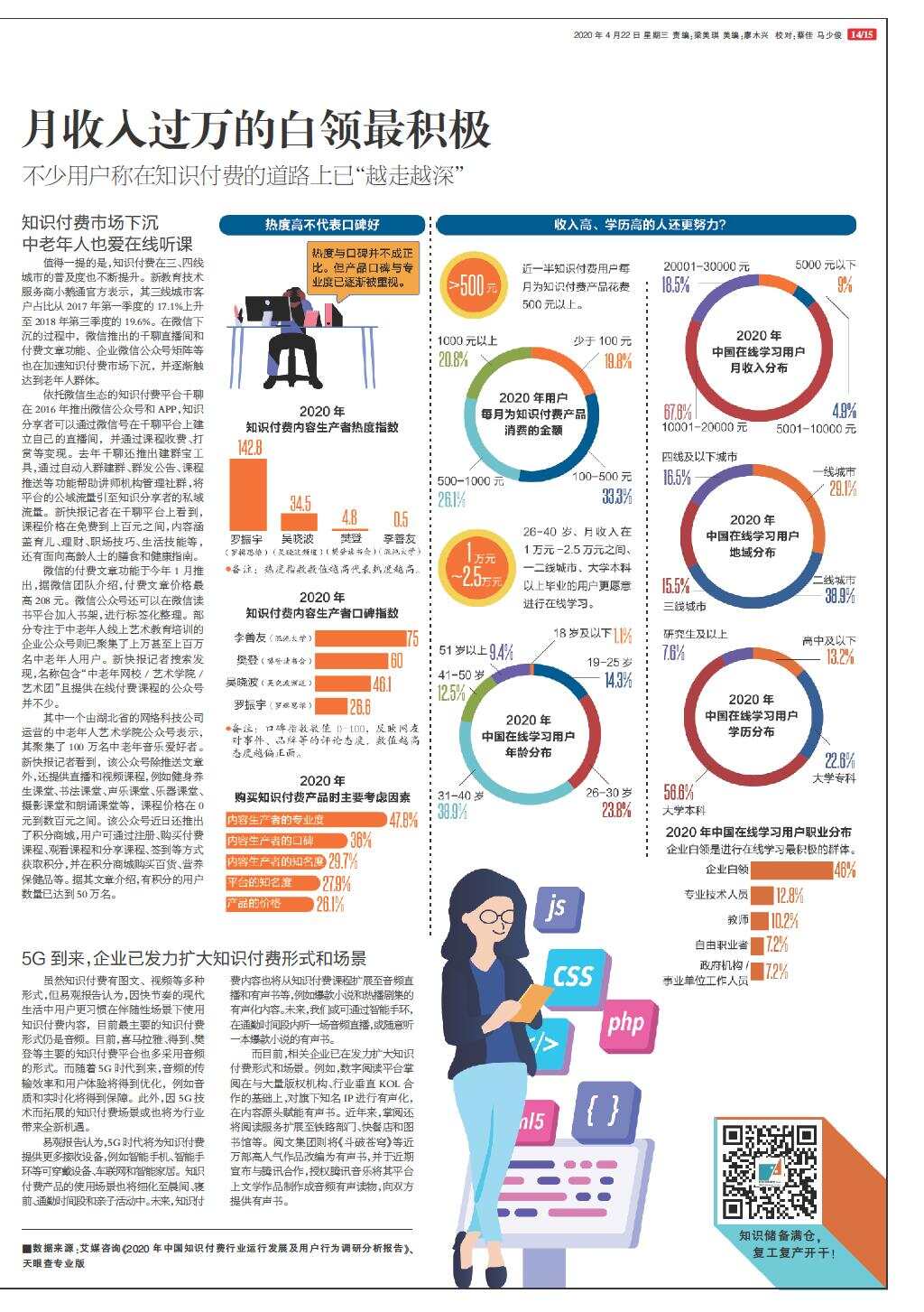 全国超3亿用户已为知识付费 月收入过万的白领最积极