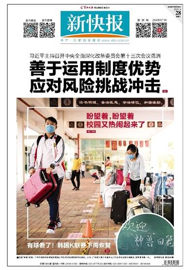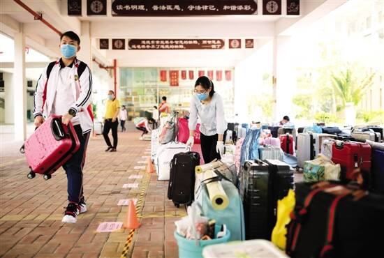 ■欢迎“神兽”回笼!广州外国语学校课室的黑板上写出花式标语迎接学生返校。27日,广州初三高三年级共16.7万名学生在超长假期后,迎来复学第一天。新快报记者 龚吉林/摄