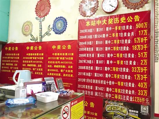 4月26日下午,佛山市福彩中心工作人员前往该站为站主和销售员送上大奖奖励金,鼓励站点再接再厉,再创佳绩!此次中奖的44130155投注站是个名副其实的旺站,从开店至今大奖小奖一直不断,中奖公告和中奖证书把店里的墙壁都铺满了,早在2002年,就中出南粤风采“36选7”的一等奖,奖金高达500万元,2012年中出刮刮乐“好运十倍”头奖,奖金40万元,此外双色球二等奖和南粤风采“36选7”二等奖也中出不少。