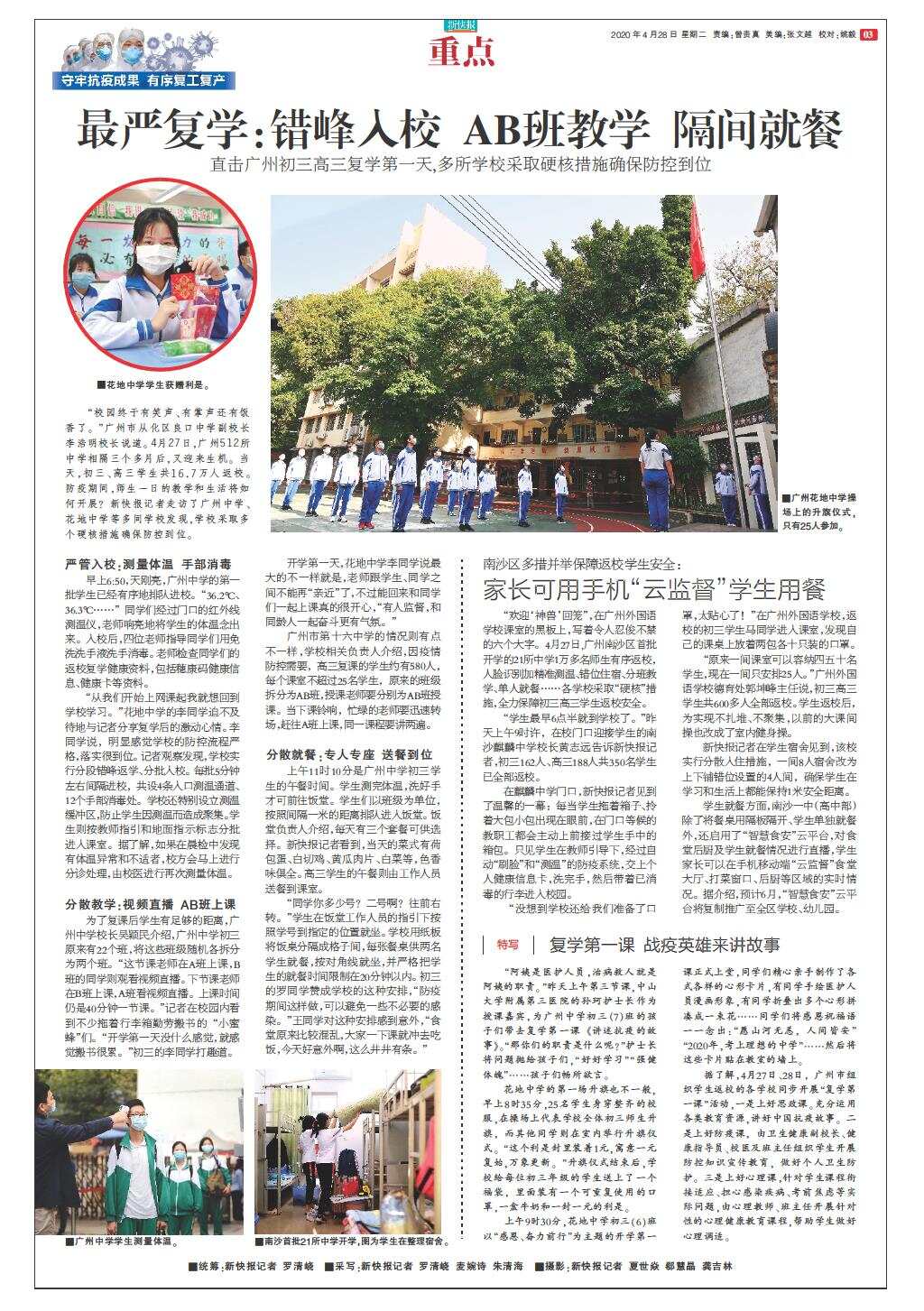 最严复学:错峰入校 AB班教学 隔间就餐