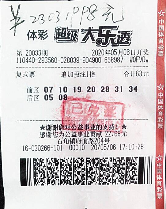 新快报讯 记者陆妍思报道 5月6日的第20033期体彩大乐透开奖中,清远市清城区石角镇府前路204号的4416030266实体店售出的一张63元的“7+2”追加复式票中出1注2299万多元的追加一等奖,加上小奖,总奖金达到2303万多元,也刷新了清远彩票单次单人中奖最高纪录。5月7日上午,幸运中奖者王先生(化名)在多名家人的陪同下来到清远市体彩中心办理了兑奖手续。机选再换号收获大奖