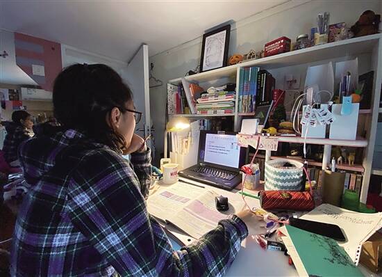 ■3月初,疫情期间在家上网课的广州中学生。新快报记者 龚吉林/摄(资料图片)