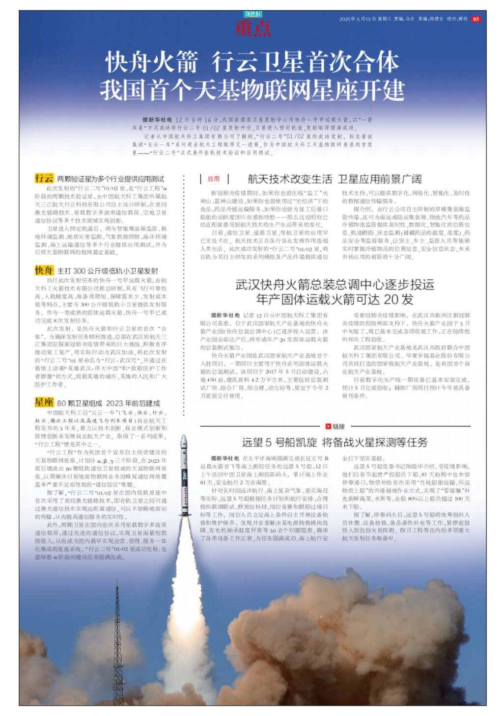 快舟火箭 行云卫星首次合体 我国首个天基物联网星座开建