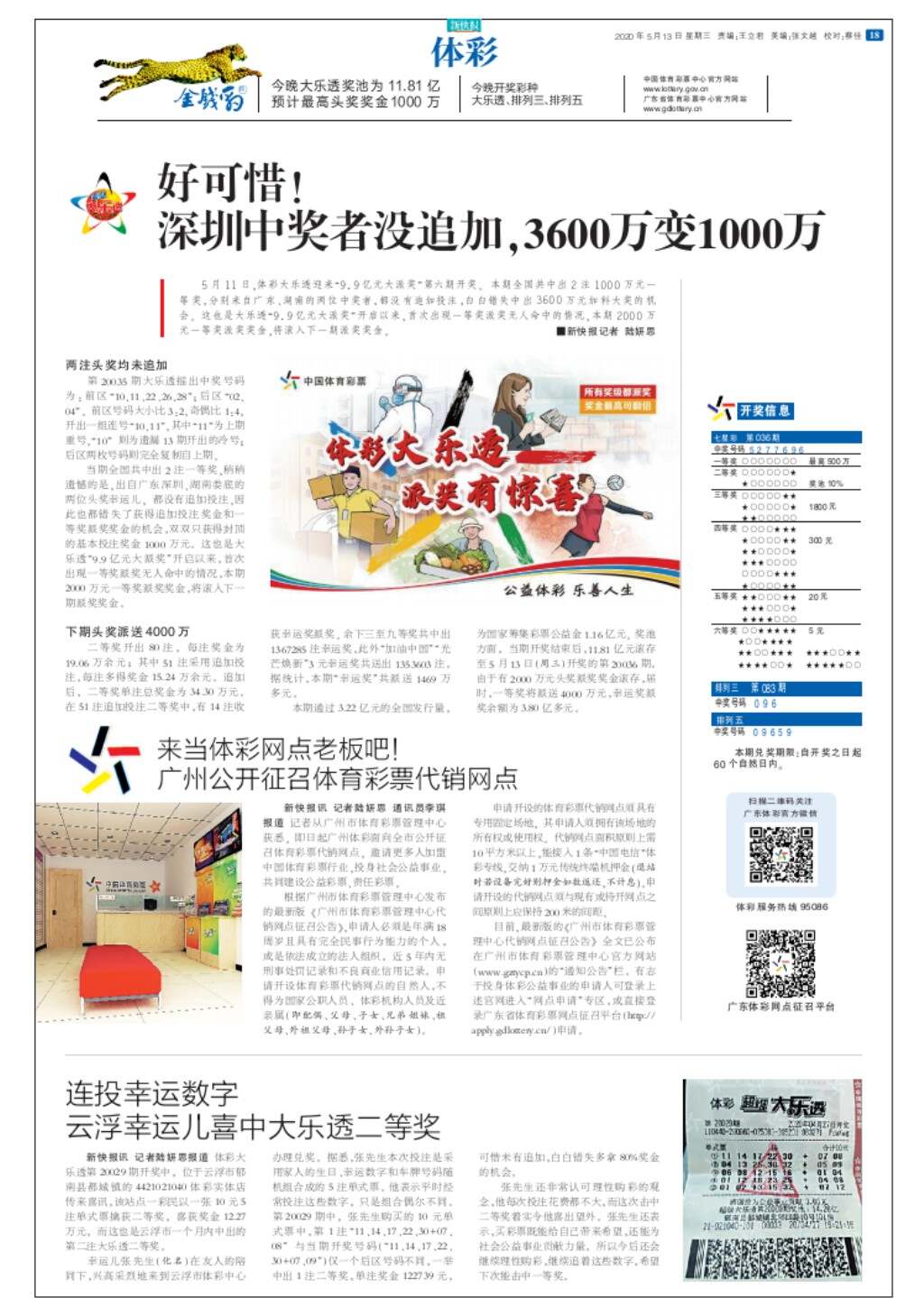 好可惜! 深圳中奖者没追加,3600万变1000万