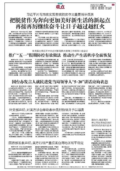 国防部发表声明:美方行径严重损害台海地区和平稳定 2020年05月21日