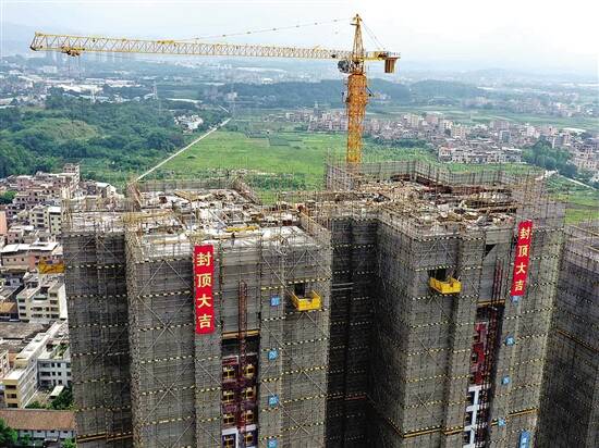■随着首栋楼主体结构封顶,广州北站安置区项目建设驶入快车道。通讯员供图