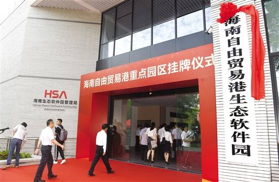 ■6月3日在海南澄迈县拍摄的海南自由贸易港生态软件园挂牌仪式现场。 新华社发