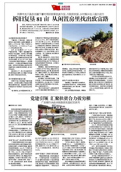 梅州市五华县龙村镇湖中村,是广东省省定贫困村。广发银行梅州分行自2016年对口帮扶湖中村以来,发挥党建引领,主动作为、勇于担当,助力当地探索脱贫之路,实现治“穷病”、拔“穷根”。