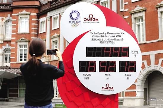 ■在日本东京车站前的东京奥运会的倒计时电子钟。 新华社图