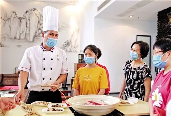 ■新快报记者 陈斌/文 龚吉林/图“这么大的牛肉啊!”“这是什么酱料啊?好香!”“这是野生黄芪吧?跟市面上见到的不一样!”番禺壹荟馆酒店五楼的空二房已经被阵阵混合着药材香和肉香的气息弥漫了,由番禺区慈善会联合广州市天河区新快社会服务发展中心等机构共同申办的“番禺区2019年公益慈善创投项目大赛”项目“番禺味·道爱心饭局”活动正在这里进行,行政总厨叶友青正在分享壹荟馆的招牌出品菜式之一参芪荷香牛小排。