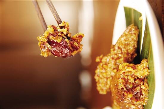 陈皮洗沙粽、酱香蛋黄黑猪肉粽、梅干菜五花肉粽,这样上海风情的淮扬特色粽,如今在广州就能吃到——由广州华新集团与香港1957餐饮集团合作打造的淮扬菜食府十里弄堂,日前推出了别具江南风味的“端午礼粽”,一盒三味,六只一套,装在磨砂的黑礼盒里,美丽得像件艺术品。