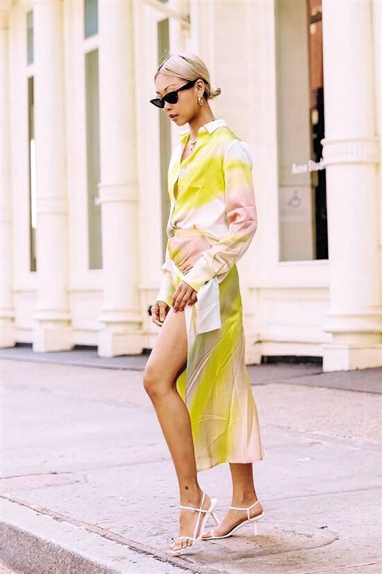 “黄皮”女孩在挑选有图案的衣服时可考虑像扎染这样随机性大的图案,看起来更显年轻有活力。