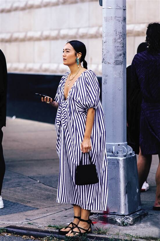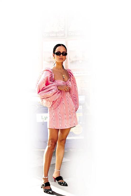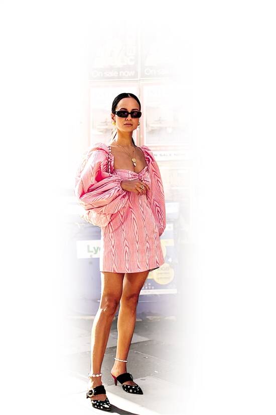 但实际上,只要能在下单前结合自身来正确选择蓬蓬袖款式,有些雷区还是可以避开的。首先要了解自己的肩型,相对于宽肩而言,窄肩和蓬蓬袖更配,但如果你有肩部形态不够挺拔、溜肩等问题的话,就要更谨慎结合领型来挑选蓬蓬袖款式。溜肩型尽量减少过多的露肩,尤其是当你的溜肩还伴随斜方肌发达的话,一字领、宽大方领、材质过软的蓬蓬袖装就不适合,如果你选择了一件在袖山处加高且硬挺的蓬蓬袖型,而且它与肩颈线之间的角度刚好能达成90度边有种轻微垫肩感的话,在视觉上就刚好能修饰溜肩的线条,但想单靠看图片挑选到如此合身的款式,成功率真的很低。