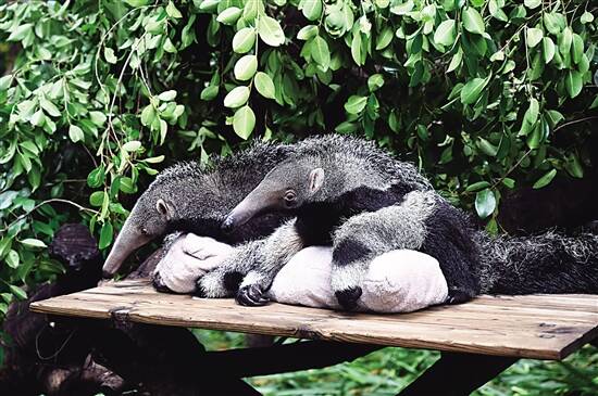 新快报讯 记者李佳文 夏世焱报道 6月10日,长隆野生动物世界的大食蚁兽双胞胎首度正式与游客见面。这也是亚洲首例成功繁育大食蚁兽双胞胎。