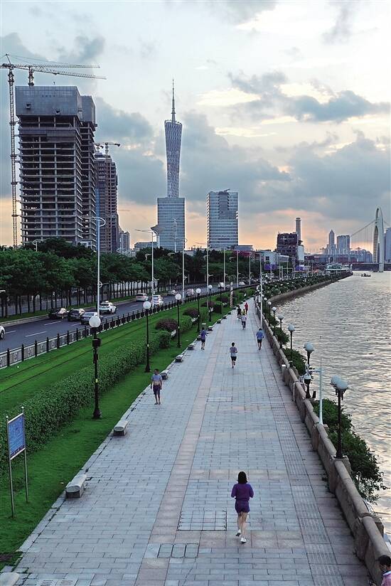 ■结束连续几天的阴雨,广州迎来了难得的好天气,昨日傍晚,不少市民来到海珠区阅江中路跑步健身。 新快报记者 毕志毅/摄