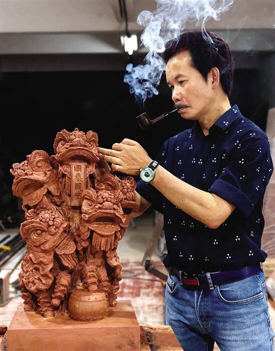 农历五月初五是中国传统节日端午节,广州雕塑院院长许鸿飞特别制作了一尊舞狮雕塑。雕塑中的五个狮子精神抖擞,栩栩如生,其中最高的狮子口中还吐出一个联子,上面写着“国泰民安”。“今年太特殊了,国泰民安是我对祖国和人民最好的祝愿”,许鸿飞说。谈到创作缘由,许鸿飞说:“端午节在岭南最大的民俗就是赛龙舟和舞狮,舞狮在南方很普遍,除了端午节,在很多喜庆场合都会出现,为了迎接端午节,我特地做了一组5个狮子一起的雕塑。我之前还做了一个龙舟的雕塑,龙舟一般要配一个狮子,龙狮文化在广东结合得一直较好。”(综合)