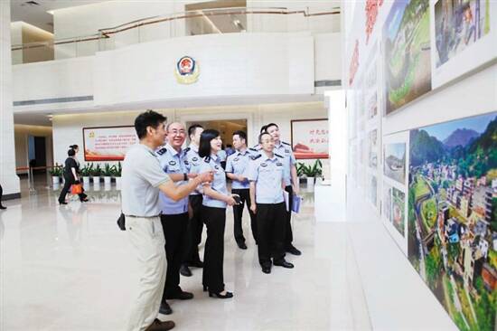 ■民警们在兴致勃勃地观展。