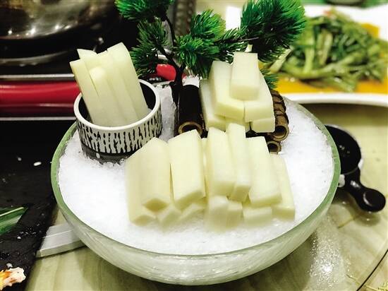 吊丝丹原产广州沙河镇,是当时当地有名的特产之一,吊丝丹笋水分特多,纤维少,果实肉质脆嫩幼滑,且吃前无需杀去一般竹笋自带的苦涩味,剖去外皮的笋,白白嫩嫩滑滑溜溜,甚是喜人,没有食家不爱,尤其是最简单直接的吃法——冰镇,更能感受到它的肉质鲜嫩,味道清甜且一点渣滓都没有,完全像大口大口吃一种清爽水果的样子。