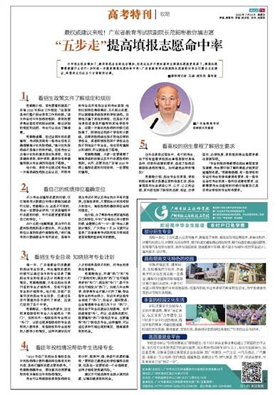 今年招生机会增加了,被录取机会自然也会增加,但是这也并不意味着考生填报志愿就更容易了。填报志愿需要掌握什么技巧?如何进一步提高填报志愿的命中率?广东省教育考试院副院长范韶彬对考生们提出五点建议,希望考生们在五个方面做好功课。■新快报记者 王娟 通讯员 粤考宣