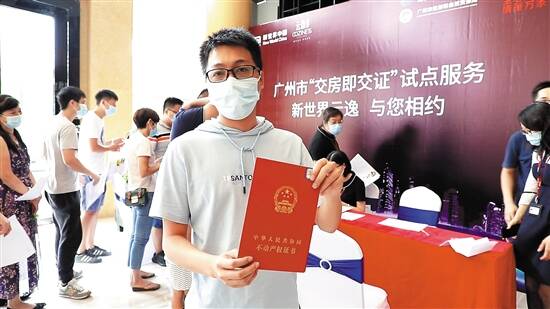 新快报讯 记者沈逸云 通讯员穗规资宣报道 一手拿钥匙一手拿“红本本”,广州购房业主收楼创下新速度。8月25日,广州市规划和自然资源局开展试点“交房即交证”,购房业主“收楼即拿证”的梦想成为现实。据悉,只要符合登记条件、完成缴税的楼盘项目,都可以申请“交房即交证”。当天上午,新世界云逸楼盘交房现场,业主拿到了一份收楼“大礼包”:不动产权证书、新房钥匙和物业维修基金卡等,成为首批享受新服务举措的业主。“过去收楼拿到钥匙后,还要等好几个月甚至更长时间才能拿到产权证,今天一步到位!”在“交房即交证”现场,一位业主表示,其钥匙和证一起拿到手,十分方便,“可以说是喜上加喜。”