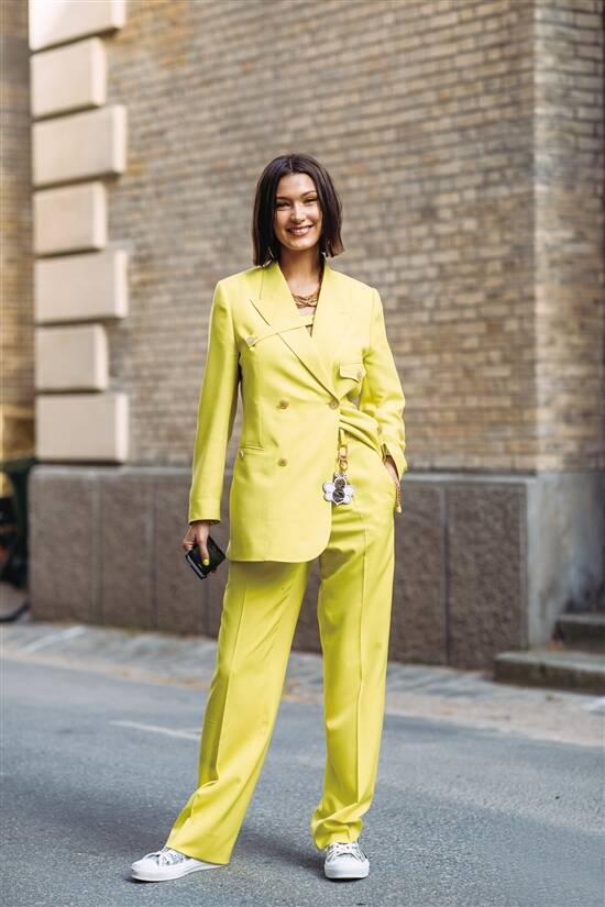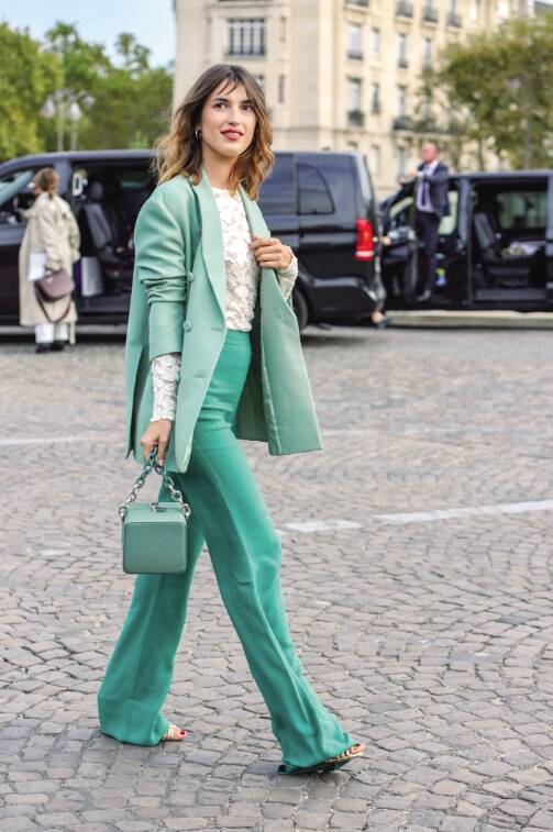 大西装全套穿是闭着眼睛穿都不会出错的小技巧,尤其是颜色出彩的话,能轻松跳出通勤装的老式呆板,成为办公室里的一道风景。