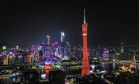 ■国庆长假广州塔点亮节庆彩灯,城市中轴线流光溢彩。新华社发