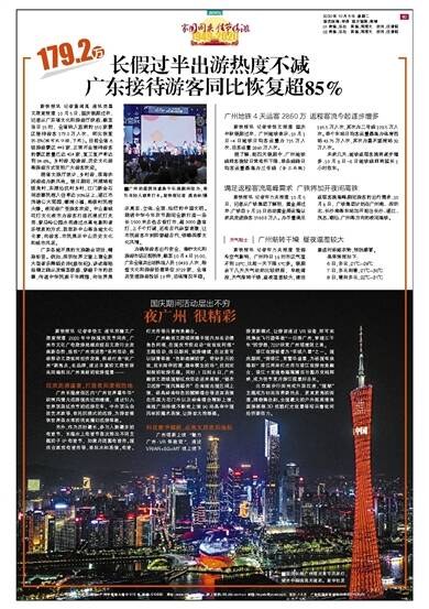 新快报讯 记者李佳文 通讯员穗文广旅宣报道 2020年中秋国庆双节同庆,广州市文化广电旅游局顺应疫后文旅行业发展新态势,组织“广州欢迎您”系列活动,积极推动文旅夜间经济发展,积极打造“夜广州”新亮点、名品牌,通过丰富的文旅资源共同编织出广州美丽的夜游图景……
