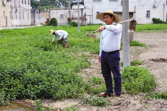 ■东莞市桥头镇帮扶揭阳市揭西县凤南村进行艾草种植,图为驻村第一书记赖浩华在基地帮忙劳作。