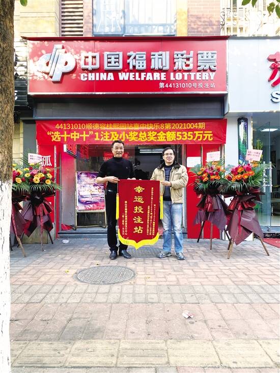 新快报讯 记者陆妍思 通讯员何洁兴报道 2021年1月4日晚,中国福利彩票“快乐8”第21004期开奖,当期“选十中十”全国中出1注,单注奖金500万元,这也是新年以来,“快乐8”玩法在全国爆出的首个足额大奖。这个独一份的幸运就落在佛山市顺德区,而且是由21位彩民一起分享,加上其他奖等总奖金达535万多元。
